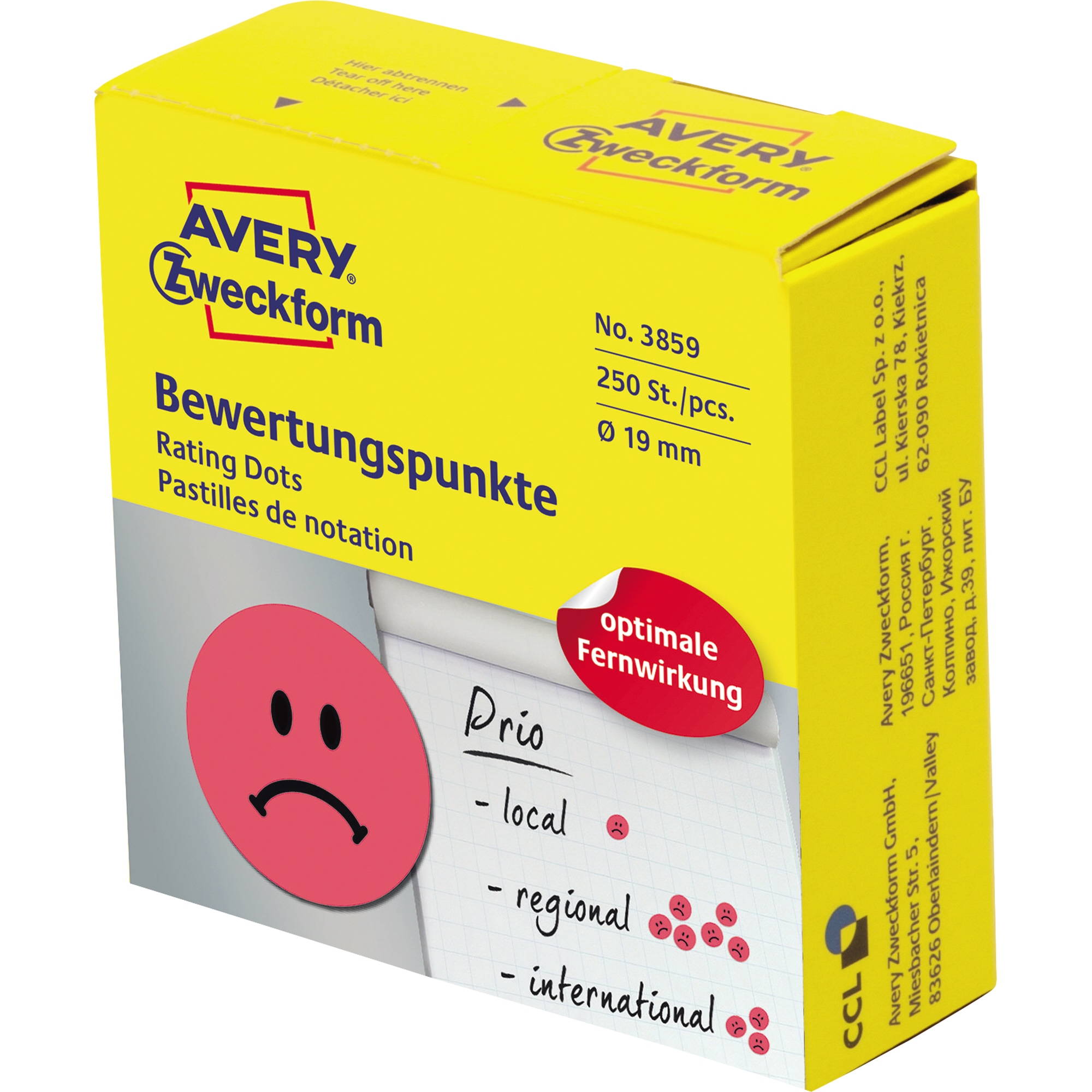 Produktinformationen "Avery Zweckform Etikett Gesicht 3859 19mm rot 250 St./Rolle"