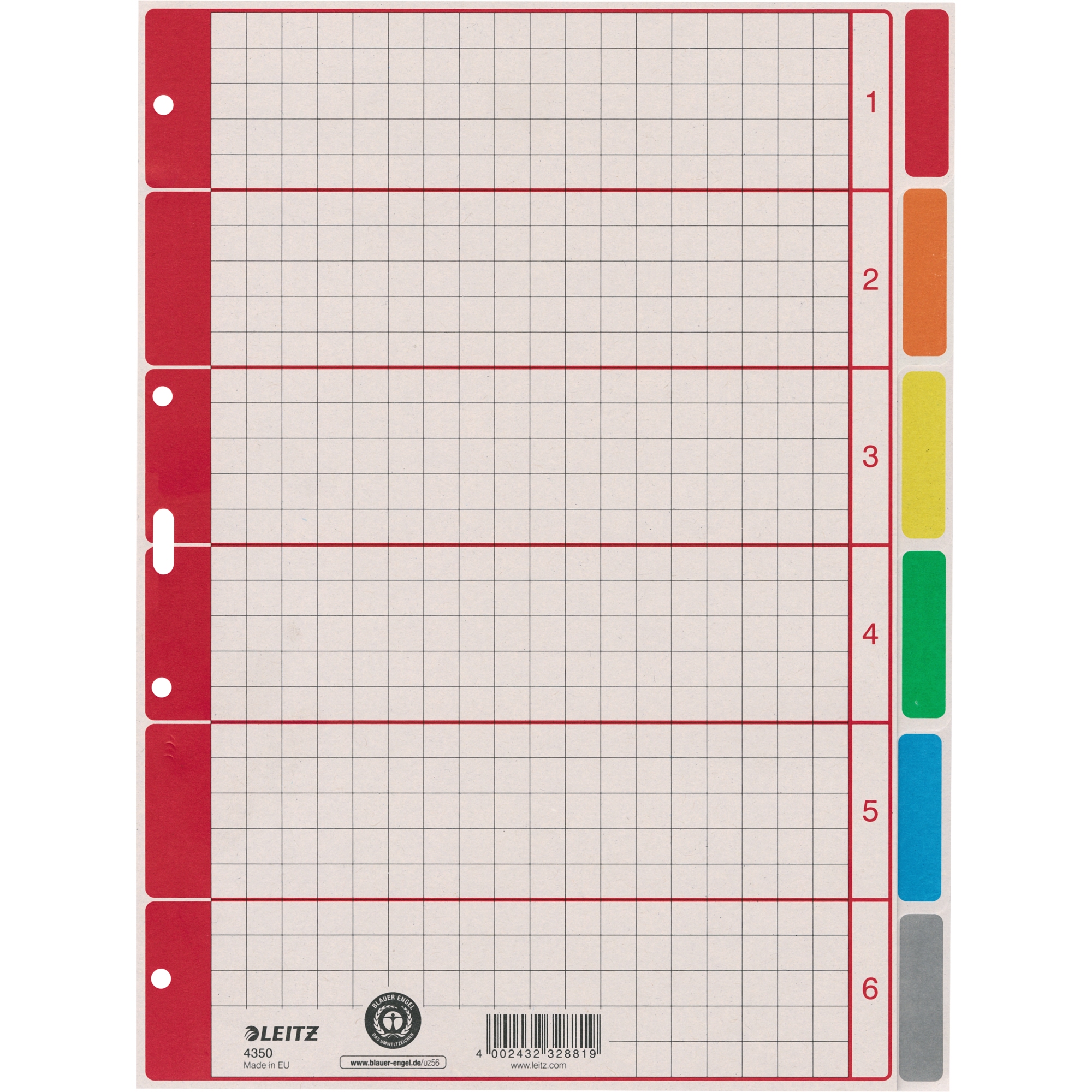 Leitz Register 43500085 blanko DIN A4 6farbig bedruckt Karton grau