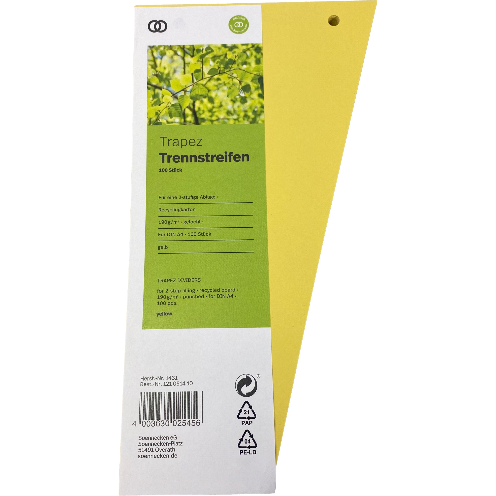 Soennecken Trennstreifen oeco 1431 12,5/6,5x24cm gelb 100St.