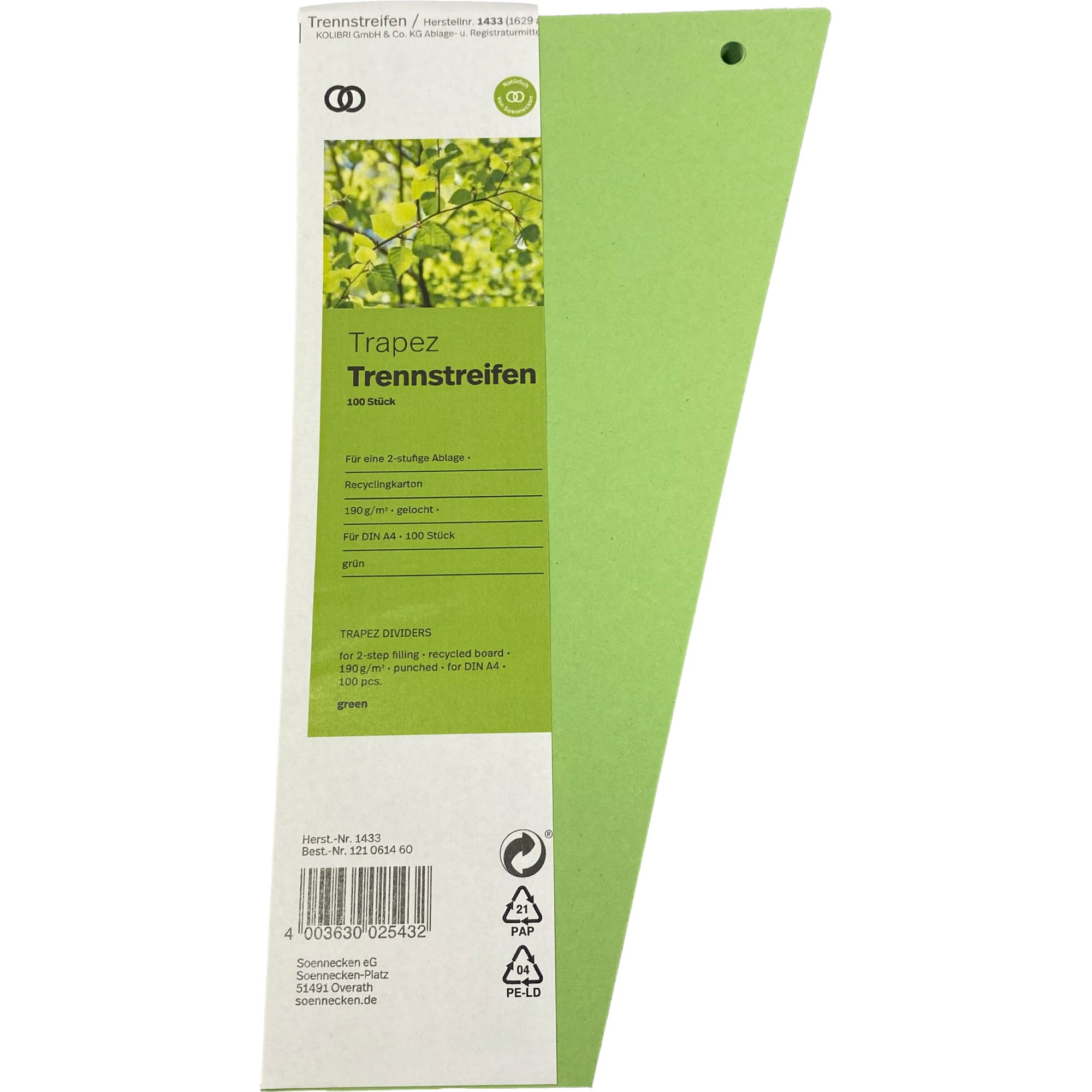 Soennecken Trennstreifen oeco 1433 12,5/6,5x24cm grün 100St.