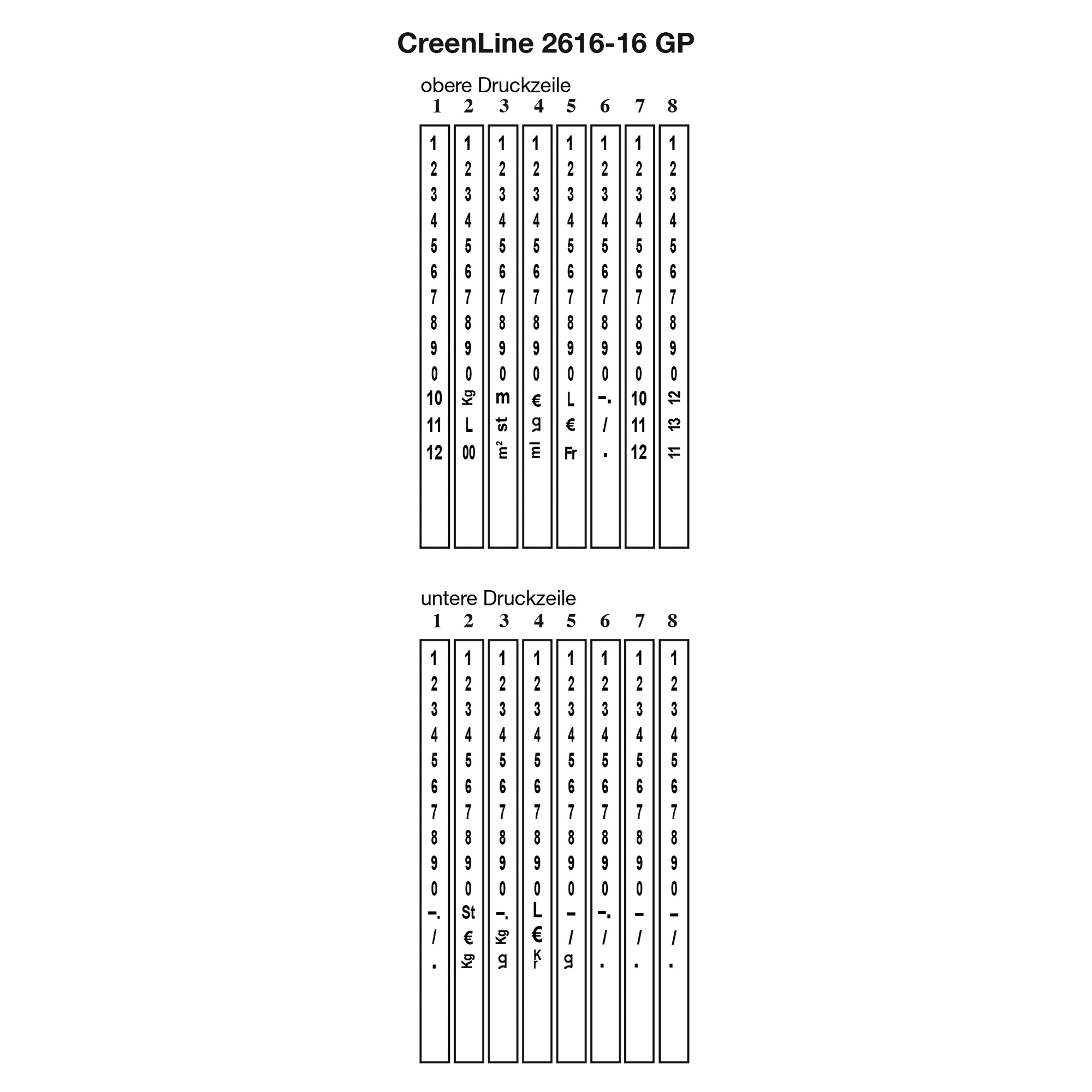 - max. Druckzeilen: 2 Druckzeilen
